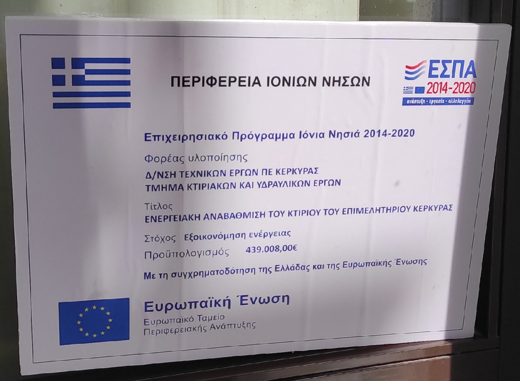ΠΡΑΞΗ:  ΕΝΕΡΓΕΙΑΚΗ ΑΝΑΒΑΘΜΙΣΗ ΤΟΥ ΚΤΙΡΙΟΥ ΤΟΥ ΕΠΙΜΕΛΗΤΗΡΙΟΥ ΚΕΡΚΥΡΑΣ – ΟΛΟΚΛΗΡΩΘΗΚΕ